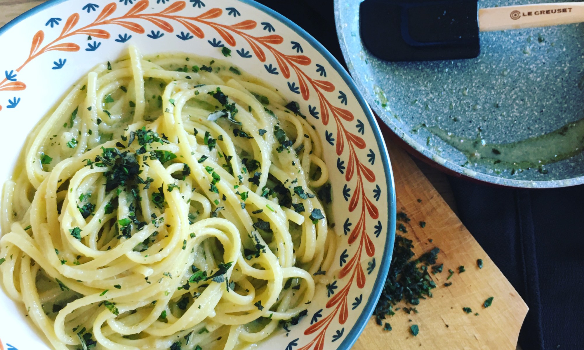 Ora siamo a giugno e finalmente sembra essere esplosa l’estate. Di conseguenza anche le piantine sono esplose. Solo l’aneto sembra fare qualche capriccio. Ma spero si riprenda. Comunque, con quelle deliziose erbette, vuoi che non mi metta a spadellar qualcosa?! Poi non vedevo l’ora di utilizzare lo stiloso leccapadella #Lecreuset.