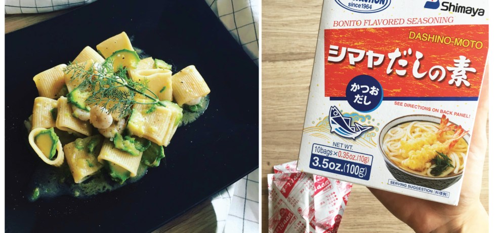 Mezzi paccheri zucchine e gamberetti al brodo “fusion”