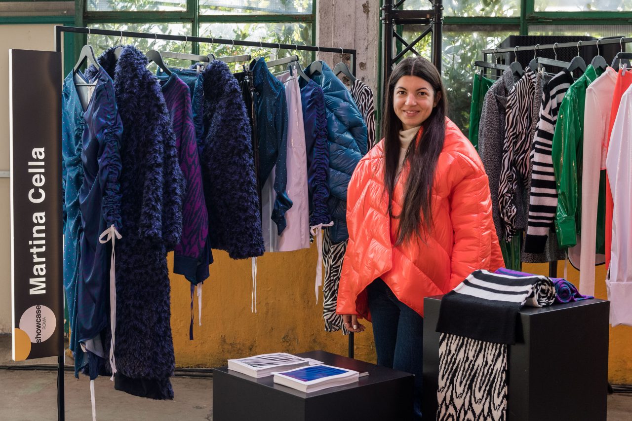 “Sono andata in Romania per una sfilata, e così ho deciso di fermarmi due giorni in più. Ho noleggiato una macchina e ho viaggiato da sola. Ho visitato tanti posti, paesi, castelli e poi all’improvviso ho trovato un mercatino nascosto in mezzo al bosco. Camminando poi, ho notato che esposti tra le bancarelle, c’erano dei vestiti tradizionali. Ne ho visto uno che mi piaceva un sacco, l’ho comprato e una volta tornata a casa l’ho guardato bene e mi son detta: da qui posso partire per fare la collezione”. Impavida, giovane, fresca nonostante la stanchezza accumulata per arrivare in tempo al suo esordio, Martina Cella stringe forte a sé il piumino arancio brillante che la avvolge come uno scialle, e inizia a raccontarmi di eventi e scoperte. Gli stessi che alla fine diventano tasselli silenziosi di Surv-Live, la linea Fall/Winter 19-20, presentata lo scorso 24 gennaio dalle passerelle del PratiBus District ad AltaRoma.