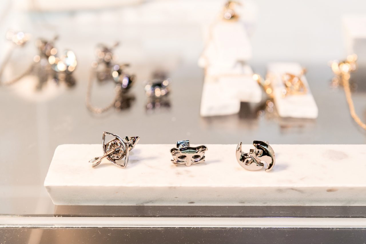 Un luogo dove vige, l’inaspettato, dietro le singole scelte che ogni giorno, si compiono “anche quando il cliente acquista la coppia di tre orecchini e ogni giorno deve scegliere di indossare solo due maschere, lasciandone sempre fuori una” mi spiega Giorgia mentre con le mani aggancia e poi sgancia quell’occhio cieco dalla catenella.