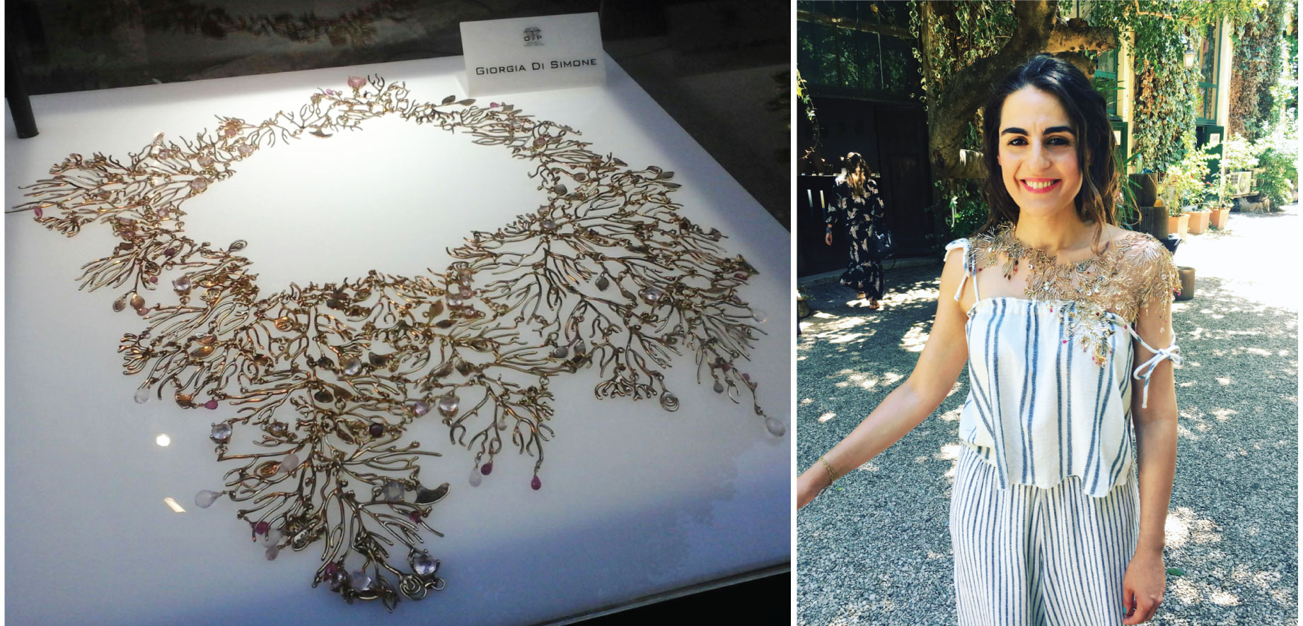 Succede in un caldo e magico pomeriggio di luglio, in una delle vie più incantevoli di Roma, dentro il famoso cortile che ha fatto da set al film Vacanze Romane, quando con un progetto a tema, per la mostra evento Sensi & Bijou di Marina Valli, Giorgia espone Keep in Touch la sua creazione ispirata al tatto.