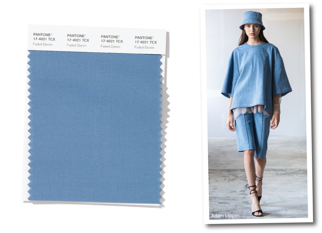Nel 2002 Junya Watanabe usa il denim per confezionare un elegante abito da ballo, trasmettendo subito un’idea comfy di eleganza e femminilità. Pantone lo scorso settembre ripesca Faded Denim dalle passerelle newyorkesi, e gli affida più o meno lo stesso compito. Tecnicamente si tratta di un tono polveroso di blue, ma perfettamente in grado di combinarsi per creare mix freschi e moderni. Come riesce bene Adam Lippes, con il suo pret a porter dal tocco sporty, nell’interpretazione intellettuale e ricercata di uno street style di alta gamma.