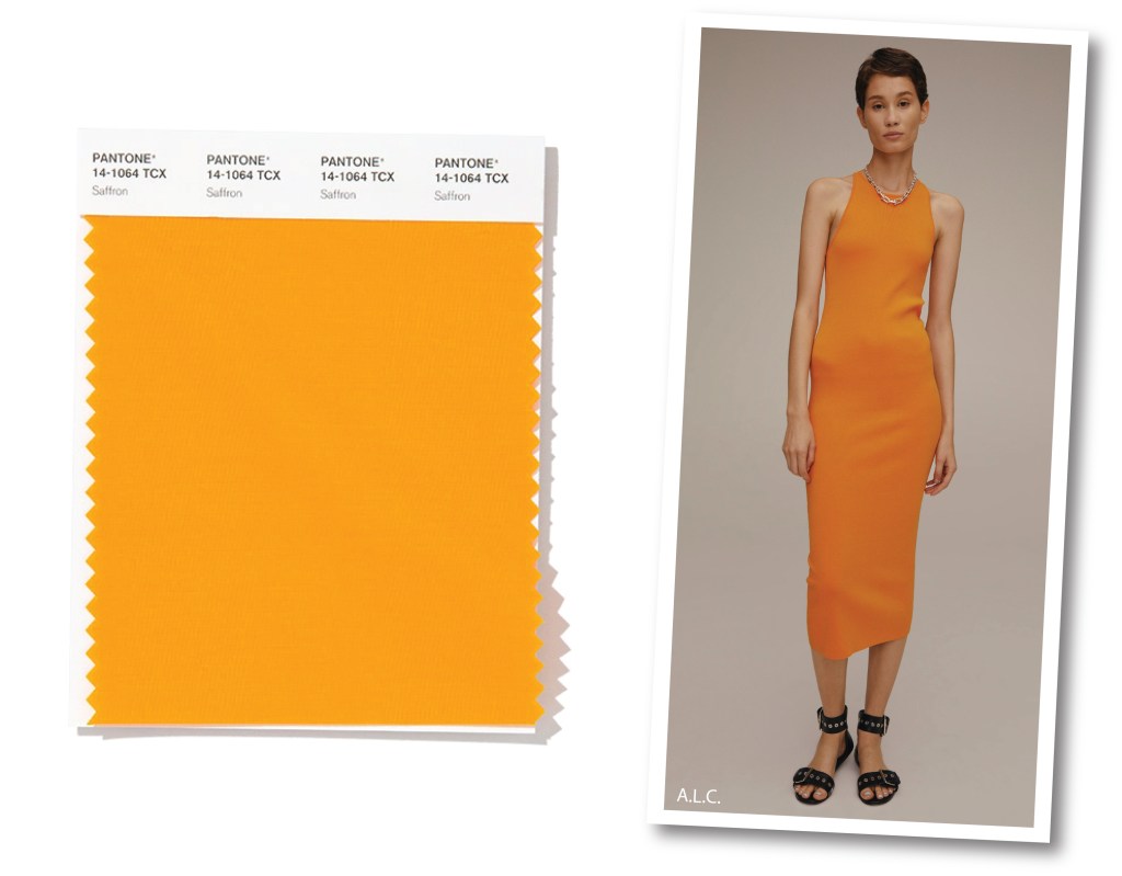 Rubato al vasto universo del food, o meglio delle spezie, Saffron è la traduzione inglese del profumatissimo zafferano. Avvolgente, dai toni caldi e autunnali, questa sfumatura selezionata da Pantone, regala un tocco pungente e raffinato non solo ai nostri piatti, ma a tutto il fashion system, non dimenticando la sfera del design. Si parla di gustosa brillantezza secondo i report, e così dalle passerelle newyorkesi, Saffron spicca nel ready to wear casual chic di Andra Liberman, firma creativa di A.L.C., illuminando di calore, l’impronta fredda di un semplice e minimal abito a canotta.