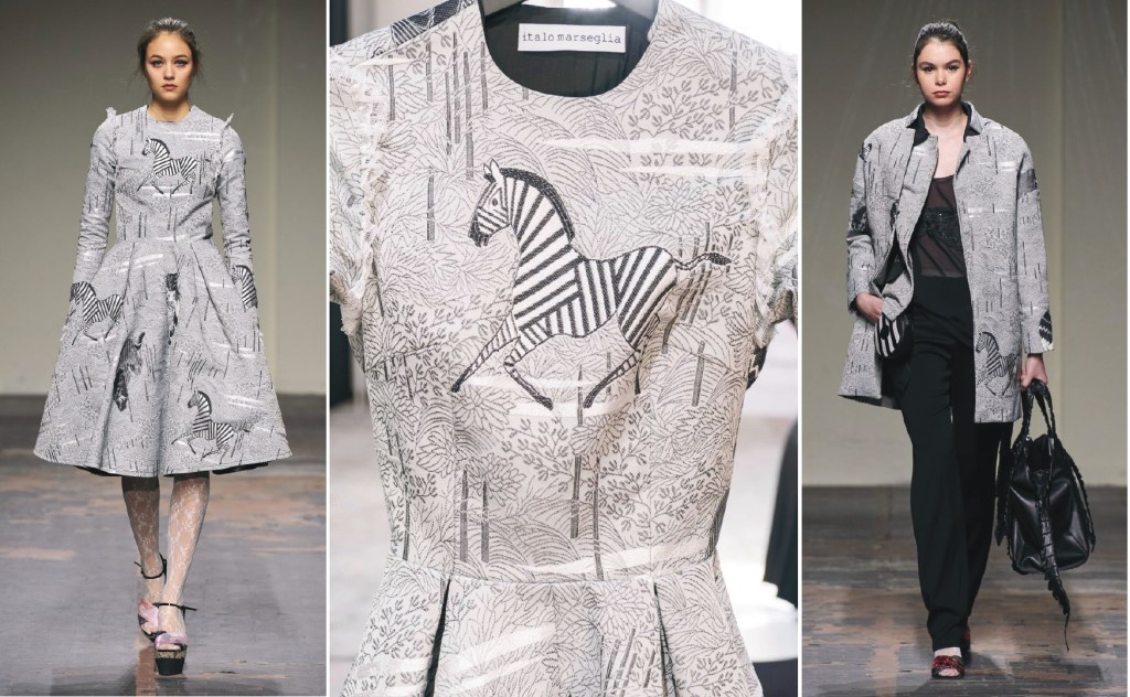 A portarne la fiaccola: Elliot e Jeanie, eroine per lo stilista campano. Due domatrici circensi di metà Ottocento realmente esistite. Precorritrici del movimento femminista, ispirano la collezione imprimendo fierezza, la stessa che Marseglia in un’elaborazione retorica e infantile ruba alle bestie; in un campo semantico, dove aldilà del circo e dei safari, il richiamo alle fiere serve unicamente a dare mens et corpus all’idea di femminismo estremo.