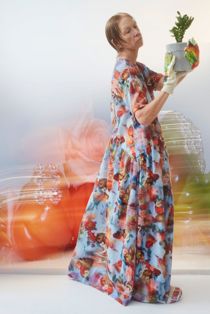 Lo scorso novembre Collina Strada partecipa anche al GucciFest, la miniserie co-diretta da Alessandro Michele e Gus Van Sant. Un’occasione di promozione unica che, seppur digitale, offre al brand la possibilità di lavorare con tessuti di alto pregio, senza perdere mai la sua verve ironica, festaiola e rumorosa. Per l’occasione, infatti, presenta Collina Land, e collaborando con l’artista Freeka Tet, realizza un videogioco psichedelico, dove ogni personaggio esplorando diversi mondi – botanico, acquatico e glaciale – è sempre invitato a fare qualcosa di concretamente utile per salvaguardare il pianeta, come raccogliere la spazzatura, ad esempio.