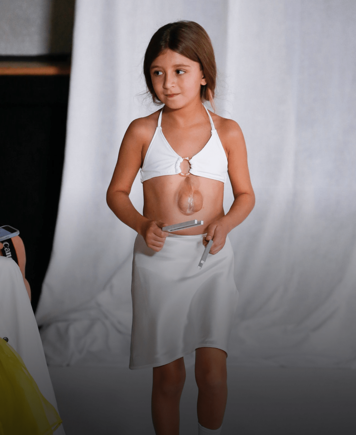 - Per la designer, è importante il quarto chackra – quello del cuore -, e Virsavija Borun Goncharova, la bimba nata con una rara malformazione è protagonista della presentazione. Sì! Quello è un cuore.